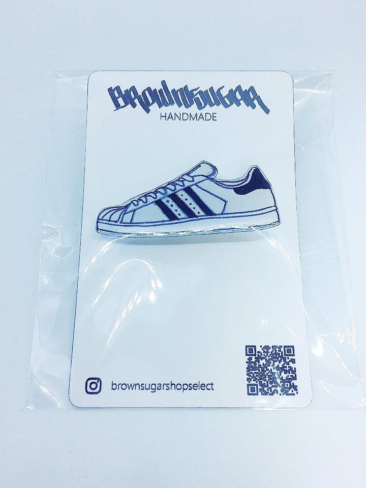 ハンドメイドのスニーカーをモチーフにしたバッジです。